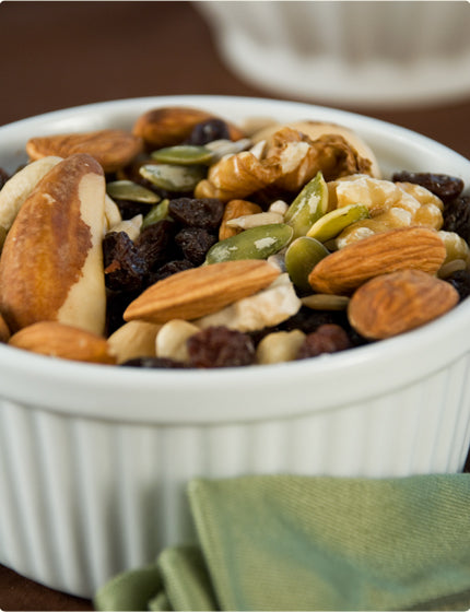The Energy Mix includes Almonds, Brazil Nuts, Cashews, Walnuts, Raisins, Pepitas and Sunflower Seeds. All the nuts and seeds in the mix are raw.